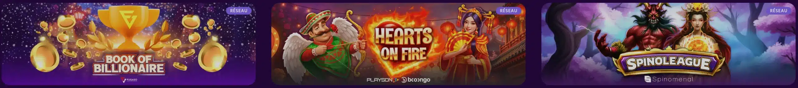 Ici, toute concurrence est défiée face des bonus sont si généreux qu’il est possible de booster vos sessions en un seul clic. Jetez un coup d’œil à notre immense bibliothèque de jeux qui collectionne les titres les plus convoités.